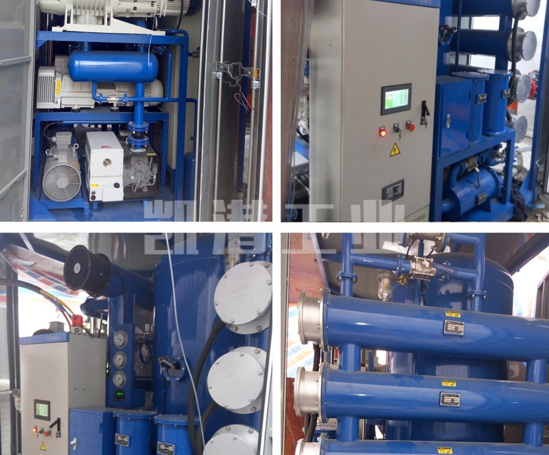 110KV-330KV的變壓器絕緣油凈化處理可以達(dá)到乙炔值水分為零,無(wú)雜質(zhì)污染,提升油的使用周期,也適用于高等級(jí)新油,進(jìn)口油的深度處理,本機(jī)增加了羅茨泵增壓系統(tǒng),二次高真空分離系統(tǒng),三維立體閃急快速蒸發(fā)系統(tǒng),其脫水、脫氣、脫乙炔、、除酸值、脫除游離炭等,處理后油極限耐壓值更高,既可作濾油使用。也可作為獨(dú)立真空源對(duì)變壓器設(shè)備進(jìn)行真空干燥注油功能。